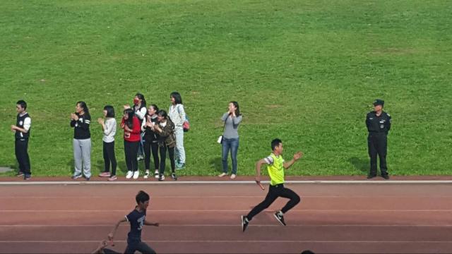 在为期两天的比赛中,运动会精彩不断,运动健儿们在赛场上尽情挥洒汗水,观众们在场下掌声如雷,随着一声声发令枪响,运动健儿们在属于他们的舞台上激情飞扬! 运动员们都发挥出了不屈不挠,顽强拚搏的体育精神,他们是运动场上的英雄。我院牙合提克孜获得跳高、跳远双项第一,阿迪力,张海燕,杨墨丹分别取得400米第三,110米栏第二和100米第三的好成绩。另外我院辅导员吴菲菲老师取得了教工组女子100米第一的好成绩。最终我院本科生、研究生分列全校总分第十名和第五名。
