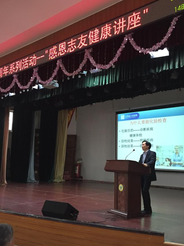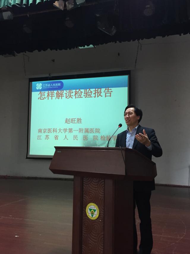 4月22日,金沙集团1862cc主办的纪念“志友”成立20周年第二次活动顺利开展。此次活动特邀江苏省人民医院/南京医科大学第一附属医院检验学部副主任赵旺胜为志友们介绍“常见检验报告的解析”。